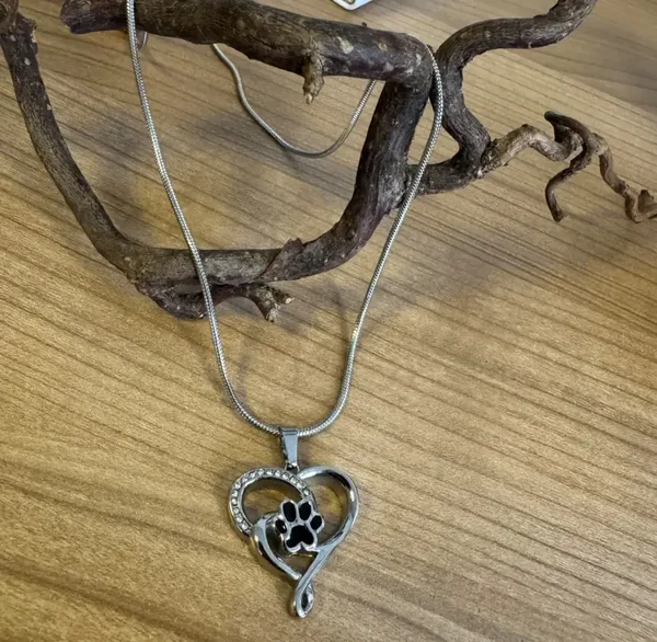 Mooi assieraad met pootafdruk en strass steentjes.Inclusief collier 50 cm. Makkelijk te vullen met het schroefje aan de achterkant.
